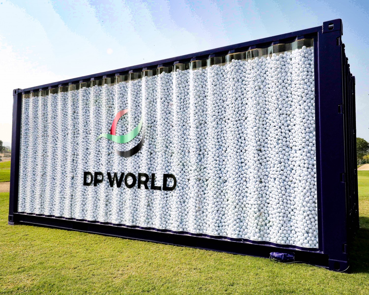 The container, which is made from a repurposed shipping container, can house up to 200,000 golf balls.